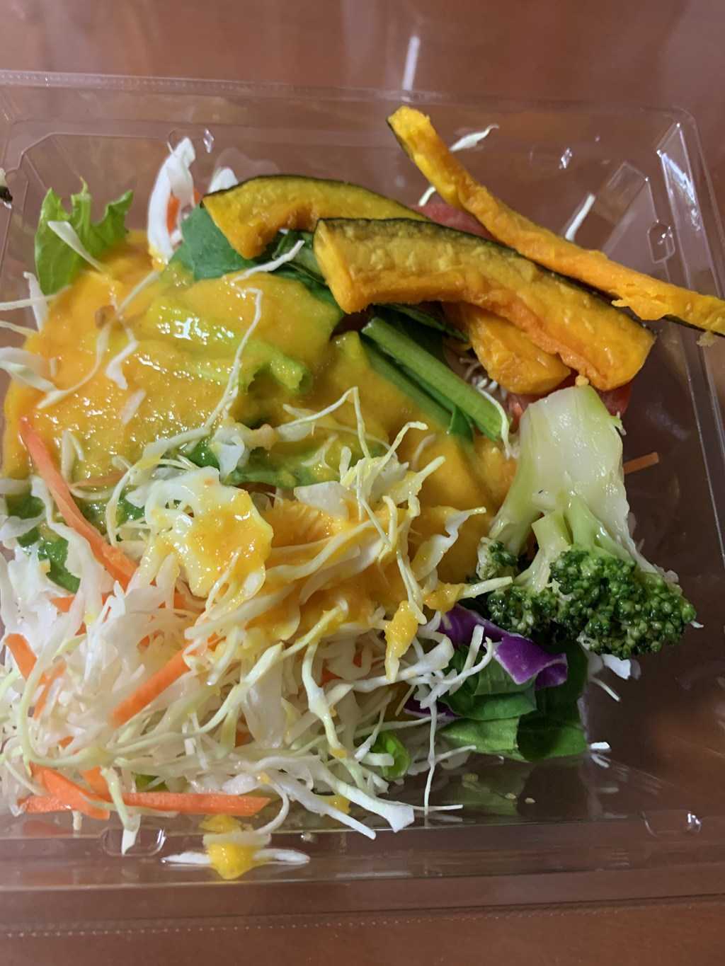 「スーパー三和」の惣菜売場に「緑黄色野菜が摂れるサラダ 人参ドレッシング」本体価格298円を飯極で購入して試食します。