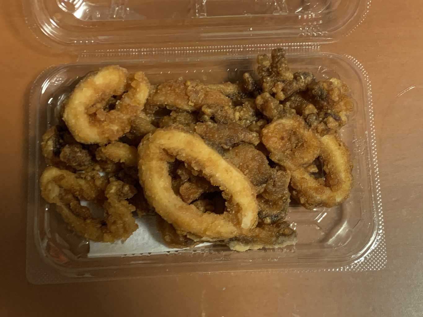 「スーパー三和」の「いか丸ごと唐揚げ」本体価格100gあたり198円 Pあたり336円を試食します。