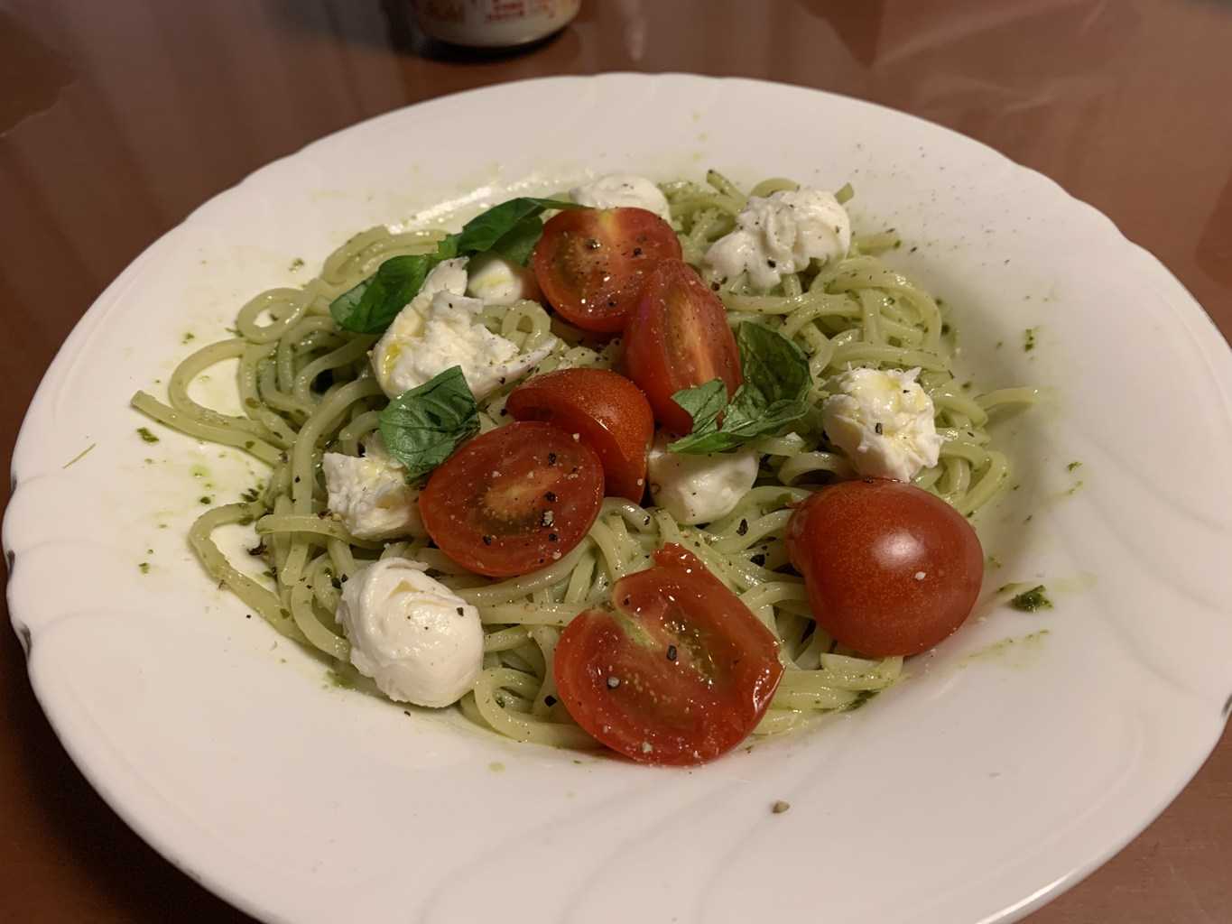 モッツァレラとトマトとバジルの葉っぱを加えています。