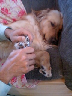 いつもの元気はどこへやらトータンがお手入れグッズを持ち出すと、とたんに弱気な2人ですつめきり文太なすがままです。指毛のお手入れねねあきらめきってます。お手入れが終ると、しばらくトータンに近づかない2人なのでした。