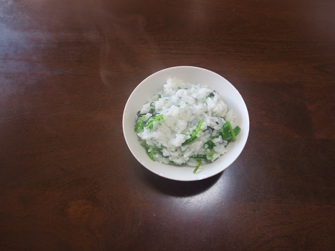 今日の本県は、とてもいいお天気でしたが早朝は、外に出ると、厳しい寒さでした。大寒までは、まだまだ寒い日が続きそうですね。 今日は七草粥を食べる日でしたね。ほんとは朝食べるものなのですが、昨日七草を買っていなかったので今日の午前中に七草を買いに行きお昼に食べました。家族は仕事でいませんでした。出来あがった七草粥です 来年からは、覚えておいて、朝食べないとだめですね。夜の分にもなるので、豚汁も作りました。今回の豚汁には最後に大根おろしも加えました。 そして、ほうれん草と人参の胡麻和えを作りました。 私一人の昼食でした。いいお天気だったので、午後からは外出しました。明日からはお天気が悪くなるようです。 にほんブログ村応援も宜しくお願いしますね。