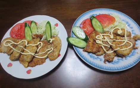 昨日、今日といいお天気でしたが気温は低く寒い日でした。私は朝起きると、トイレ掃除は裏玄関に干してある布ぞうきんを使うのですが、ぞうきんがカチカチに凍っていました。こんな日は薄着で外に出てしまいますが防寒対策は必要ですね。今のところ、風邪はひいていませんが。今日は外作業もしました。 今日の夕食に鶏肉の甘酢漬けを作りました。玉ねぎ、ピーマン、人参、赤唐辛子を刻んで砂糖、酒、酢、醤油を混ゼて、加え煮立たせ、冷まします。鶏肉に、酒、醤油をもみ込み、片栗粉をまぶしてフライパンで焼きます。熱いうちに甘酢の中に漬け込みます。これは主人が美味しいと言っていました。 さつま揚げもグリルで焼きました。みそしる、にしんずしも加えました。にしんずしの画像は今回は写していません。 数日前に刻んで、干した、切干大根はお天気の悪い日は、波板で囲った中の裏庭に干してありました。その時は、あまり乾きませんでしたが昨日、今日はお天気が良かったので外に出したら、少し乾いてきました。外へ出して干しました 今の状態です。今回は初めて試したので、量が少ないですが次回からは、もっとたくさん作ろうと思います。今日の状態です。 明日もいいお天気だといいですが、冬なのでそんなにいいお天気ばかりは続かないでしょうね にほんブログ村応援も宜しくお願いしますね。