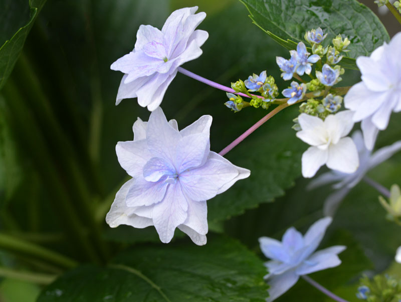 今日、お習字の提出作品を書いている途中、ちょっと気分転換にカメラを持って庭に出ました。そしたら、いいもんみっけ!!カノコユリは、まだ咲きそうにないなぁ・・・と見ていて気付いたの。 あら綺麗。きっとカメムシの仲間だろうと思い、ひとまず写真を撮って、あとから調べました。すると、これはキマダラカメムシの幼虫でしたよ。 面白かったのが、卵の割れ目にくっついている三角のお面みたいな物。これは、中から出てくる時に使うものだそうですよ。ちょうど缶ビールなどのプルトップみたいになっていて、幼虫が卵の中から頭で押すと、丸い線状にある帯のようなものが働いて、きれいに開くらしいです。ここに、解説がありました。なんだか、出てくるところを見てみたくなりました。 この幼虫は、孵化してから一週間くらいたっているようですが、クモみたいにわらわらと散らばらないのですね。兄弟仲良し。さて、カノコユリの横を抜けて、金柑のところにきたら、あら? うちには、甘夏とか山椒、金柑などがありますので、アゲハがいっぱいやってきます。 これも、ぜったいアゲハの仲間よね。この一見目玉のようなものは、模様です。 (クリックしてもらうと、無精ひげのような、小さな突起が見えます)そうそう、思いついてやってみました。手でやると、臭くなりそうなので、地面にあったチリアヤメの実を引っこ抜いて、ツンツンしてみましたよ。 ほら、黄色のつのを出しました。これは肉角とか臭角とか呼ばれるもので、臭い液をかけられることがあるそうです。だから、触ったつもりはなくても、手が臭くなって、洗ってもなかなか取れないということに。眼に見える模様といい、いきなり出てくる黄色い角といい、身を守る手段なのですね。でっかい頭に見える部分は、実は胸の背中側で、本当の頭は黄色い角の下のところ。そして、本当の眼は、ピンクの矢印の先にある、黒い点々です。まだ複眼ではなく単眼らしいですよ。 というわけで、ナミアゲハの5齢幼虫でした。これから葉っぱをたくさん食べて大きくなり、さなぎになってナミアゲハに変身する予定。私たちは金柑を食べないし、けっこう大きな木なので、このまま葉っぱを食べさせてあげようと思いますが、無事に育つかな?こちらの記事やこちらの記事も面白かったですよ。(でっかい写真や詳しい説明つき)それでは口直しに、ちょっと大人っぽくなった大虹を。 紫陽花は、成熟してくると、次第に花が下を向いて裏返るのです。我が家では、ガクアジサイの季節が過ぎようとしています。