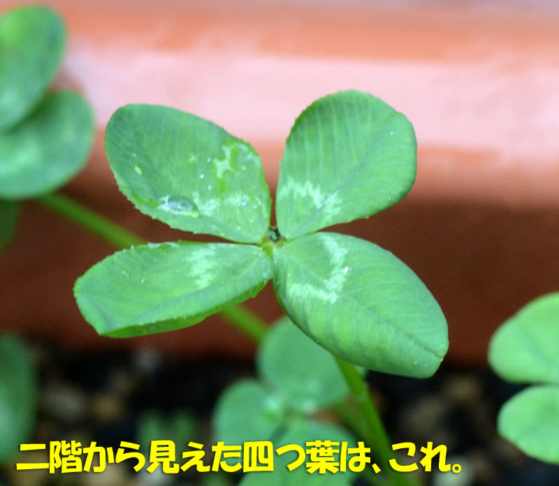 こちらでは、そんなに心配になるほど雨は降っていないのですが、ニュースを見るとすごいことになっています。昨夜、晩御飯の時に、「明日、中洲川端まで行く日やけど、雨で楽譜とか楽器が濡れたらいかんけん、防水のリュックに入れたとよ。あんまり降らんといいっちゃけど・・・」と私が言うと、次男坊も長男も、「やめとった方がいいっちゃない?」と言います。旦那も、「僕も、明日の晩の中洲のイベントが中止になったよ。」と言います。旦那は、カヤックのイベントが、博多の中洲で予定されていたの。でも、この異常事態で、中止になって残念そうでした。息子たちも、心配そうにするので、「そうやね、雨雲はまだ消えとらんし、いつ大雨になるかわからんけん、やめとこーかね。歌の歌詞はもう全部覚えとうし、リコーダーの曲も弾けるし・・・」と、お休みすることにしました。あとで、そのサークルのホームページを見たら、昨日は休講になって、振替日のお知らせが表示されていました。「なら、明日も休講になるかもね。」もう行く気はなくなり、ニュース動画のチェックばかりしていました。今朝起きて一番に窓の外を見たら、全く降っていません。雨雲ズームレーダーを見たら北九州の方が大雨になっているようでした。本当に帯状の雲が、ずっと九州北部に居座っているのですね。こうなると、台風よりもずっと大変かもしれません。だって、台風は絶対に移動していきますから・・・明日は「かな書」の日。出品の締切のことを考えたら、明日選んでもらわないと、次回では間に合わないので、ぜひ行きたい。さて、小雨の中、庭に写真を撮りに行ってきました。これは、昨日二階から写真に撮っていた四つ葉です。今日は近くからね。 その隣には、こんな四つ葉も。 ふと見ると、こんなにあります。五つ葉もあるけど、ま、いっかー。 あら、なんだかブルー系の花ばかり?いえ、ほかの色の花もありますよ。 この日記を書いていたら、天神のビツ○カメラから電話がかかってきました。先日修理に出したデスクトップパソコンが、なおって戻ってきたのだそうです。もっていったのが6月29日(木)でしたから、一週間と一日でかえってきたということになります。早いですね。でも、このいつ土砂降りになるかわからない時には、パソコンを取りにいきたくないので、「雨がおさまったら、取りに行きますね。」と答えました。