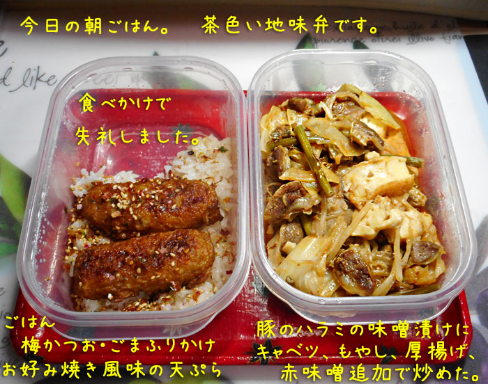 今日は、朝9時から各自の家の周りの草取りや溝のそうじ、そして10時から公園の掃除でした。この公園は、この住宅地の西側にあって、例のオシドリの来る池の横、桜が咲き、ブランコとベンチがあって、ちょっとした憩いの場。最近は町内の若返りが進み、小さい子供たちが遊ぶ姿も見られるようになりました。私がこちらに引っ越してきた43年前には、ここには古いバスが置いてあり、中に児童書が並べられていたのですが、次第に老朽化したので、だいぶ前に撤去されました。我が家の周りは、一昨日庭師さんたちが、すっかりきれいにしてくださっていたので、10時前に公園に行きました。するともうたくさんの人が集まって、作業されていました。一週間くらい前に、草刈り機を持っている人たちが先に背の高い草を全部切ってくれていますので、今日は刈られて枯れた草を集めて袋詰めすることが中心でした。ほとんど刈られているのに、イネ科の雑草だけは、生き残って穂を出しています。草刈の後一週間でもう伸びたのでしょうね。さすがです。ふと見ると、あら、ニワゼキショウ・・・ せっかく可愛い花が咲いているのに、これも取るのかなぁ。いいや、残しとこう。ニワゼキショウはとらずに、別の草を抜きましたよ。あとで、集合場所の方へ歩いていたら、まあ、ニワゼキショウの花だけはみんな残していたみたい。いっぱい咲いていました。良かった・・・40分くらいで公園がきれいになったので、集まって町内会長さんのお話を聞きました。私は・・・というと、話を聞くために皆が入った木陰で、あわててデジカメを取り出し、パチリ。念のため、ナップサックにカメラを入れていたのでした。綺麗です。皆さんは、まじめに町内会長さんの方を向いて聞いていますね。この後、ごほうびにお茶のペットボトルをもらってから、帰りました。家に帰ると、「ごくろうさん。」と母が言うので、もらったお茶を母に渡して、二階にあがってきましたよ。(普段の庭の草取り、庭の手入れは母がやっているので、その分)それから、遅くなったけど、朝ごはん。今日は、チンとせず、冷たいまま頂きました。あ、お茶だけは熱いのね。左の入れものに入っている「お豆腐と枝豆のふわふわ揚げ」は、私のお気に入りのおそうざいの一つです。そのままおやつに頂くこともありますよ。かぶりつくと、枝豆の黄緑と人参のオレンジがきれいです。右側は、残り物。タッパーに入れて冷蔵庫に保存してあるものをお弁当にしました。このトレイは、100均で売っていたのを見かけて買ってきたものですが、お弁当箱二つがちょうど載せられるし、メラミン樹脂で100℃までは大丈夫ということだから、レンチンして熱々のお弁当箱を運ぶのにバッチリです。食後、皆さんのブログを読ませて頂いたのだけど、さすがごねあさん、食べ物だけでなく、寝具も体に良い物を使っていらっしゃるのね。というわけで、私もちょっと写真撮影。我が家では、旦那と私と母の三人が、これを使っています。体の下を風が吹き抜けていくというエアコンマットです。メーカーが言うには、一か月の電気代は約13円とのこと。それで背中が蒸れることなく安眠できるなら安いと思って買いました。タイマーもついているので、消し忘れの心配もありません。旦那はいつも8時間のタイマーにしているので、起きたあと、布団を乾燥させるのにちょうど良いと言っています。だだし、旦那のと母のは、送風モードだけので、私のは夏冬両用なんです。冬になると、スイッチを下の方に入れると、頭の方は少しだけほんわか、足元はけっこう暖かくなります。温度調節もできますしね。寝る前からスイッチを入れておくと、気持ちよく寝られます。ここには、旦那のシングル畳ベッドと私のセミダブル畳ベッドがくっつけて置いてあるのですが、実は私のベッドで、次男坊がずっと一緒に寝ていたの。生れた直後から、それはそれはひどいアトピーだったので、夜中に何度も泣いて目をさまします。それで薬を塗ったり、ひどい時にはガーゼをあてて包帯でまいたり、ある程度良くなってきてからも撫でてあげたり少し掻いてあげたりする必要がありました。アトピーのせいで、誕生後のいろんな予防接種はすべて受けられなかった(腕がじゅくじゅくだったから)し、日光、ほこりアレルギーもあったから、外で元気に遊ぶことができない。犬・ねこアレルギーは特にひどく、絶対に近寄らないように、また猫や犬がよく通る場所にも行ったらダメです、と言われていた。食べ物では「米・麦・大豆」アレルギーだったから、和食系はほとんどアレルゲン。ごはん、味噌・醤油、豆腐、めん類、パン、お菓子類などもたいていダメ。かゆくなる。病院で初めの頃もらったステロイドのリンデロンでひどい目にあったから(真菌やブドウ球菌にやられた)、その後かかった病院では、真っ青なアズノール軟膏という塗り薬と、軽い睡眠薬をもらっていました。