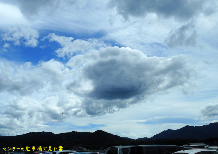 今日は、発表会後はじめての「世界の歌」サークルの日。張り切って行ってきましたよ。これから一年間かけて、来年の発表会にむけての練習をするわけですが、少しずついろんな歌を実際に歌ってみて、その中から発表する曲が決まります。今日練習したのは、 「ハワイの結婚式の歌」と、 「アヴェ・マリア」(トスティ)楽譜をもらった時に、「これ、プレスリーの曲ですか?」と先生に尋ねたら、「違うわよ。」とおっしゃったのだけど、さっき調べたら「ブルー・ハワイ」という映画の中で使われていました。アンディ・ウィリアムズさんが歌った物もありましたから、先生はそちらの事を言われたのかもしれません。エルヴィスの映画が1961年(日本公開は1962年)なのですが、1925年頃のハワイが題材のオペレッタの中の曲だという話がありましたよ。まあ、今ではとてもポピュラーな曲になっているみたいですね。もう一つの「アヴェ・マリア」は、全く聞いたことのないメロディー。言葉を覚えるために、ゆっくりゆっくりと伴奏されて、それに合わせて何度も歌ったら、すっかりくたびれてしまいました。とにかくゆっくりなもんだから、「アーーヴェーーーーマリーーーーーアーーーー」の間に二回息を吸わないともたないくらいでしたよ。最後に普通に伴奏してもらって歌ったらラクチンでした。さて、今日の練習には、差し入れを持っていきました。ごねあさんみたいに、手作りおやつというわけにはいきませんが、手作りの入れものに入れていきました。準備したのは昨日。というわけで、人数よりも少し多めに作りました。この間バスに乗ったばかりなので、今日も夏の花の写真が撮れました。そして、これがとちの実実際の大きさはずいぶん違いますけどね。それでは、今日のご飯コーナー帰りに寄ったスーパーで、イワシの梅しそフライを買ってきて食べたら、まあ美味しかったこと。また買おうっと。お芋は、昨日母が突然「ふかし芋ば食べたらおいしかろーごたぁね。あんた、こーてきて。」と言うので、買ってきたもの。安納芋と紅はるかのどちらにしようか・・・両方買いました。最後に、今日の空。なんか、翼をつけて飛んでいきたいです~ ♪