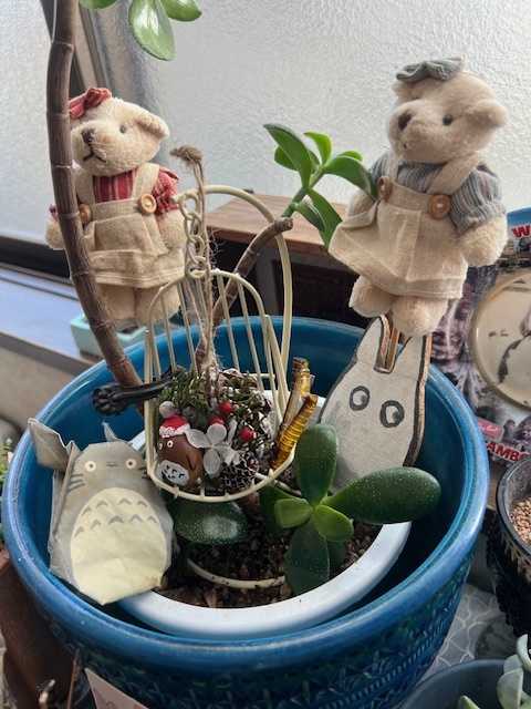 まずは、昨日の朝ごはんから。みんなは、前日の晩御飯に食べていますが、私の分はいつも翌日。そのせいか、さらに味がしみていて、美味しかったです。そのうちまた作りましょう。そして、昨日の昼ご飯になってしまったものは、これ。白玉粉をふた袋分(400g)使いました。塩をほんの少し入れて、耳たぶくらいの硬さにまとめてから、餡を挟み込んで、フライパンで焼きました。(サラダ油)餡は、井村屋のつぶ餡を使ったので、とっても簡単です。これは、私の分ですが、母も息子たちも3個ずつ食べて、旦那と私は2個ずつ頂きました。少し冷えてからでも、レンチンすれば、元通り柔らかくなるので大丈夫。たまに作ると、美味しいですね。もうひとつ、昨日作った物はこれ。年末にうさぎの飾りを作ったときに使ったカラーボールがまだまだ残っていたので、それを利用しました。これです。節分の豆だから、もっと淡い色の玉がよさそうなんですが、新たに買うのではなく、今家に在るものを利用しました。次は、お正月に使った大根の生き残り。ふと、去年のことを思い出して、1個だけ「へた大根」として楽しんでいます。窓際に置いているので、緑色の葉っぱが生き生きして、(美味しそう)次に庭の植物ですが、例の変なノースポールが気になって、広い花壇の方をよく見てみましたよ。すると、ほとんどが普通のつぼみですが、丸で囲んだ部分だけ、妙に葉っぱが多い。つぼみの大きさが全く違います。もっと近づいてみると、なんか、ものすごいことになっていました。昨日紹介した門の外の植え込みのつぼみは、これ。庭にひと株、門の外にひと株。もうじき咲きそうなので、どんな花が咲くのか、楽しみです。