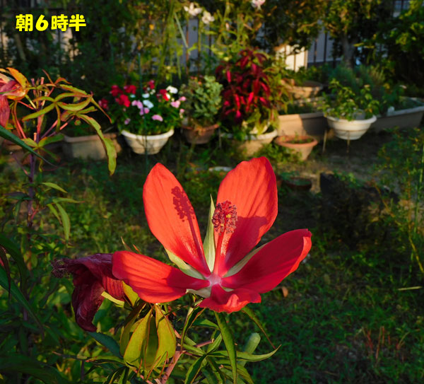 今日は暑くなる、と、わかっていたので、早朝、7時半くらいにスーパーに行って、買い物をすませてきました。なんせ、4人で食べてしまうので、あっという間に、冷蔵庫に隙間があきます。これは、帰ってきてからの写真です。いっぱい、ゼフィランサスが咲いていて、花びらがめちゃくちゃなのはいつも通り。でも、この花は、珍しかったです。 四枚花びらのゼフィランサス。なんだか、全く違う種類の花のように見えます。そしたらね、今日見つけたのですよ。モミジアオイの花を撮ろうと、花壇の向こう側に行って、気になったカヤツリグサなどを引っこ抜いていたら、モミジアオイの下に、11本。花茎が出てきていました。花茎が出たら、咲くのは早いですからね。あとで、また見てみます。では、いつもの花鉢コーナー雨のときは、傘を差して、ささっと写真を撮るくらいでしたから、花ガラがいっぱいついていました。萎れたら、葉っぱにくっついてしまうので、指先でキレイにとりました。ももいろハートにも、花ガラがいっぱいありました。ピンクの部分が多い花や、白い部分が多い花。色の濃淡。いろんな花が咲いていました。三色そろったペンタスは、可愛いですね。他の花たちも、みんな太陽の光を喜んでいるみたいでした。 ゴリラの花が、一つ開いていたんですよ。(右下)葉牡丹が、なんか、丸々しています。今年は、本当にヒメナガメに食べられていないのが、不思議。この気候のせいでしょうか。最後に、昨日の晩御飯。今回は、手抜きで、ホットサンドイッチと、チャチャッと炒めた甘醤油味の炒め物、お吸いもの。今は、二階の部屋で、ミシン縫いの続きをしています。