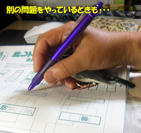 白文鳥の「もち」は、今換羽の時期で、本当に不細工になってしまって、気の毒なくらい。