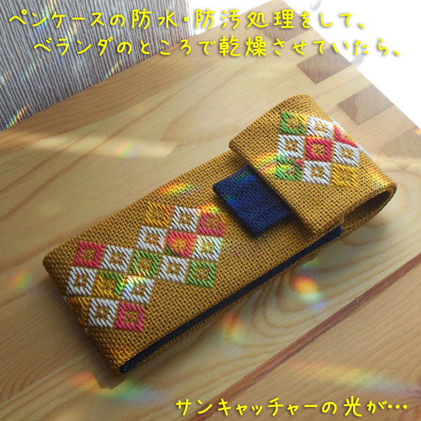 この辛子色のペンケースは、次男坊もうんと気に入ってくれたようで、褒めてくれました。