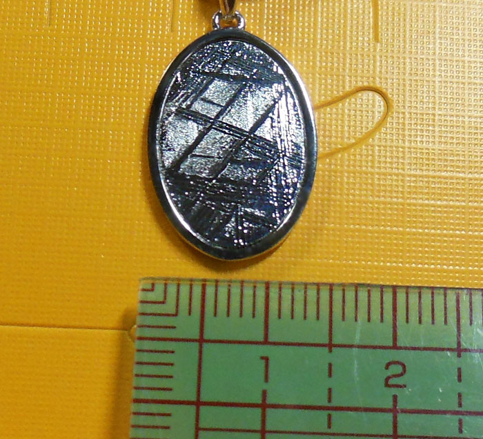 これは、もともと地球に落下してきた隕石の一部。かたまりでもよかったけど、せっかくなら身につけられるものを、と思い、この ギベオン隕石のペンダント を買っていたのです。
