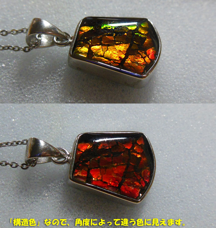 こういうオパールみたいな色が見えるものは、貝殻の成分の霰石と特殊なたんぱく質が変化して、構造色が見えるようになったから。普通の白や茶色の化石は珪酸塩鉱物さなどが入ったり置換されたりしてできているので、出来方が違いますね。
