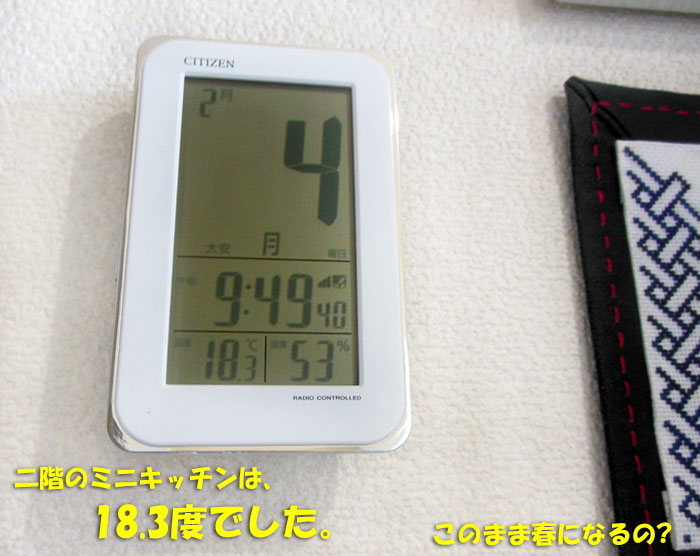 ふと見ると、暖房の入っていないミニキッチンは18.3度。