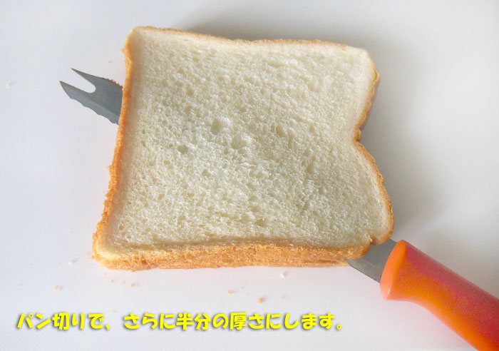 買ってすぐの食パンは柔らかすぎて切りにくいので、買った翌日くらいがいいですね。