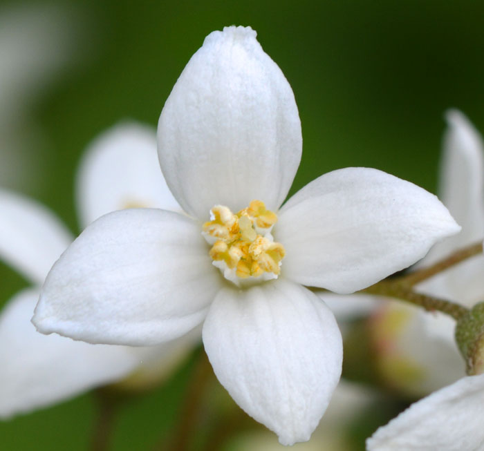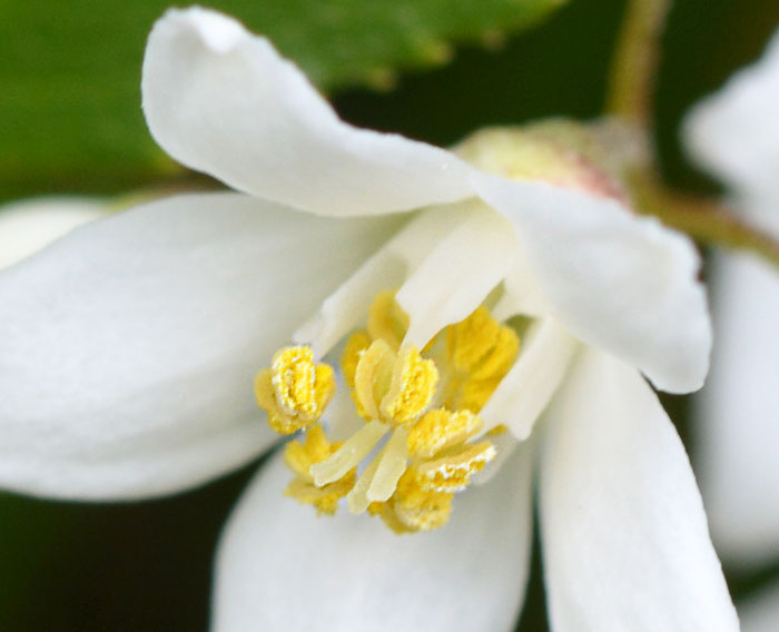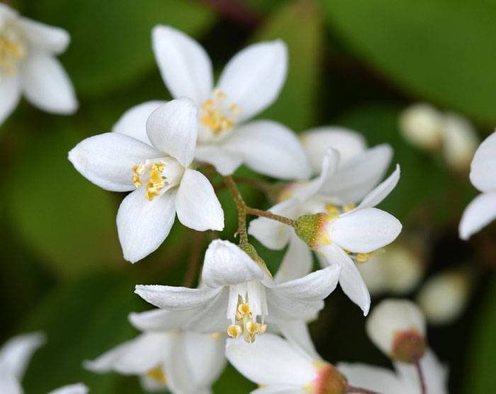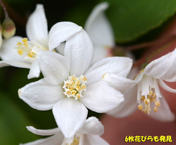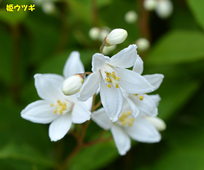 今真っ盛りの「姫ウツギ」です。独特の花びらの質感と、おしべの茎(?)の形がとても個性的。