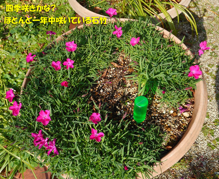 こちらは、冬でもめったに雪が積もらないし、気温も、そんなに低くないからでしょう。庭の花がなくなることはありません。年中、いつでも何か咲いています。