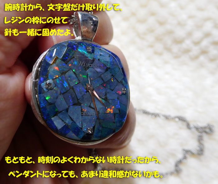 せっかく見つけた時計が、壊れていたのは残念だけど、こうしてペンダントに作り直すことができて、それは嬉しい です。