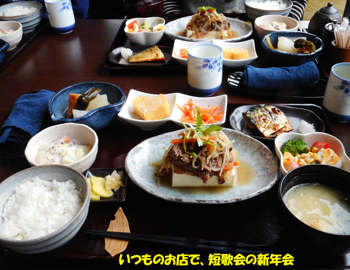 短歌会の新年会だったので、いつものお店に行ったら、肉豆腐というのが、朝食べたのとよく似た味。塩サバは昨日食べたし、おでんも、つい最近食べたばかり。