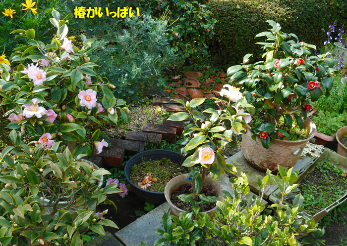 帰ってきたら、椿の仲間たちが、私をお出迎え。ヤブツバキも少し咲いてきました。どうも、一番遅いのは乙女椿になりそうです。​​