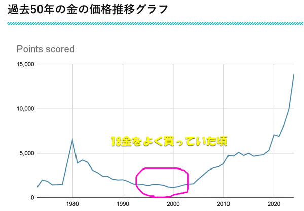(これは、純金の価格。私が持っているのは18金だから、少し安い)