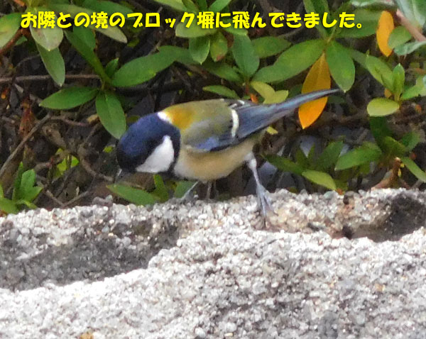 そのブロック塀の上を、シジュウカラが、行ったり来たり。