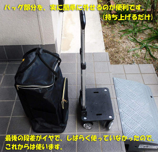 お気に入りのカートだったけど、この段差を持ち上げるのが嫌で、