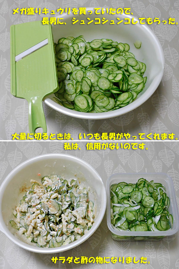 大量にキュウリを切るときは、長男の役目になっていたんですよ。