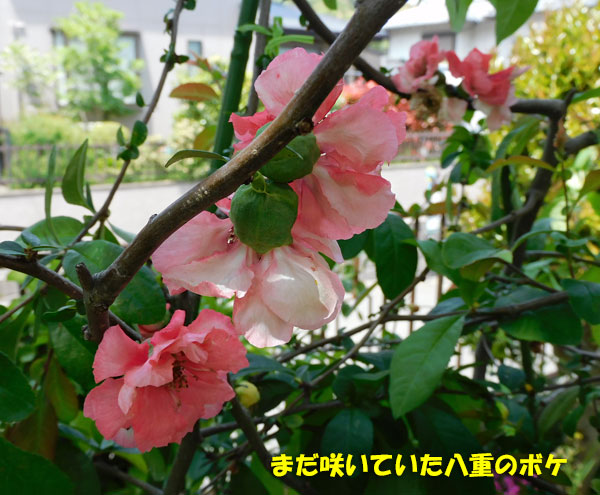 全部終わったかと思っていたのに、また咲いた八重のボケ
