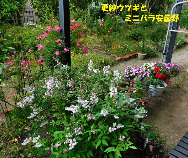まずは、 更紗ウツギと、ミニバラ安曇野