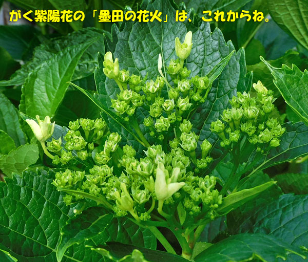 これは、甘夏の日陰に植えてある「 星咲きエゾアジサイ