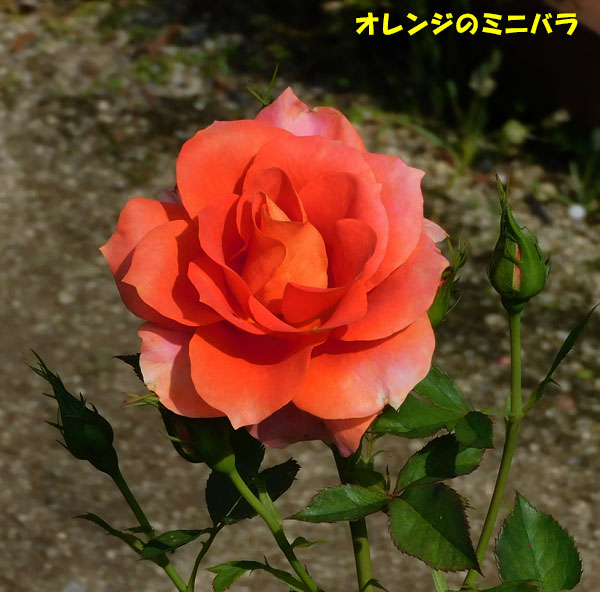 その横の、 ​オレンジ色のミニバラ​