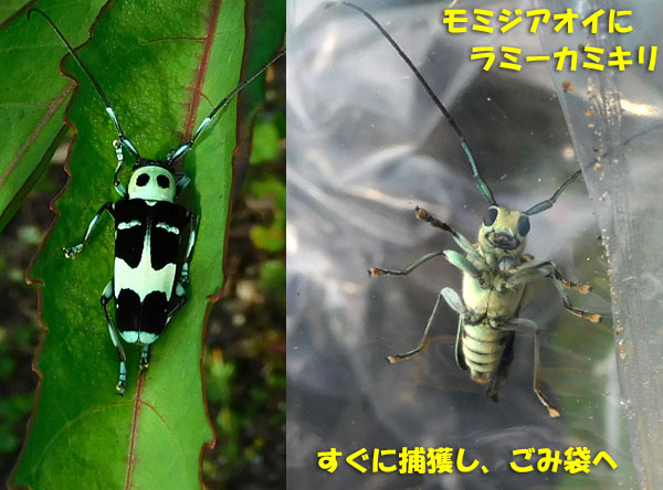 一昨日いた ラミーカミキリ は、顔が白かったからね、