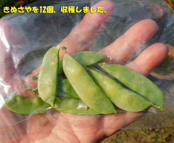 ラミーカミキリを捕まえたあと、せっかくなので、 ​豆苗のきぬさや​ を収穫。