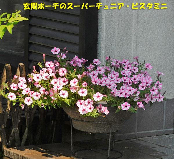 そして、玄関ポーチに置いた ​スーパーチュニア・ビスタミニ​ も、
