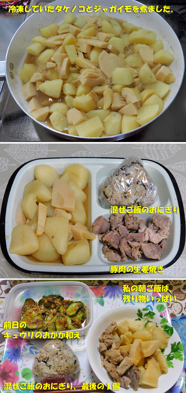 ​冷凍していたタケノコ​ を使った晩ご飯にしました。