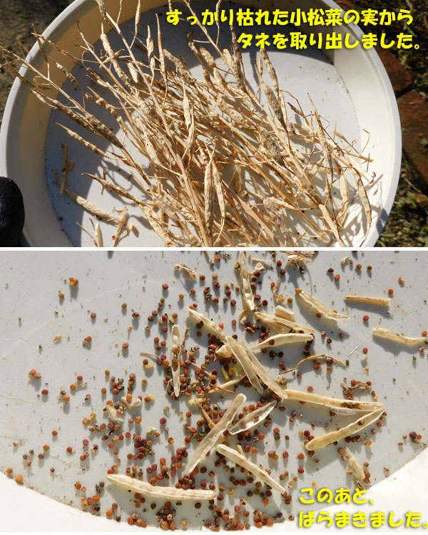運よく生き残ったら、来年小松菜が芽を出すでしょうか。