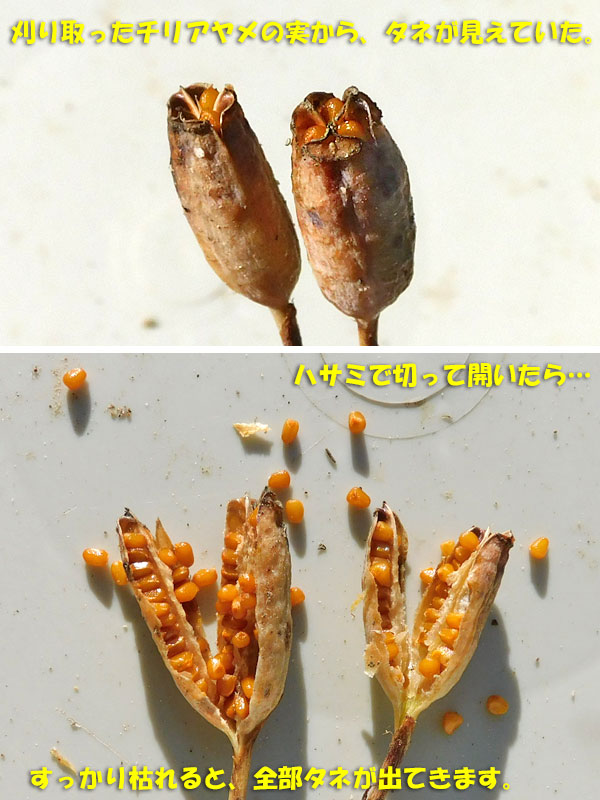 そして、刈り取って、集めそこねていたチリアヤメの実から、