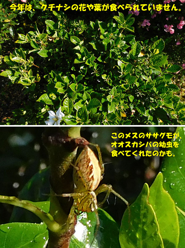 この、雌のササグモが、幼虫を全部食べてくれたのかもしれません。