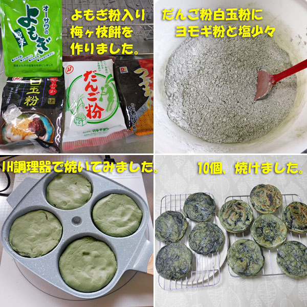 昨日は、先月買っていたヨモギ粉を使って、濃い色の梅ヶ枝餅に挑戦。