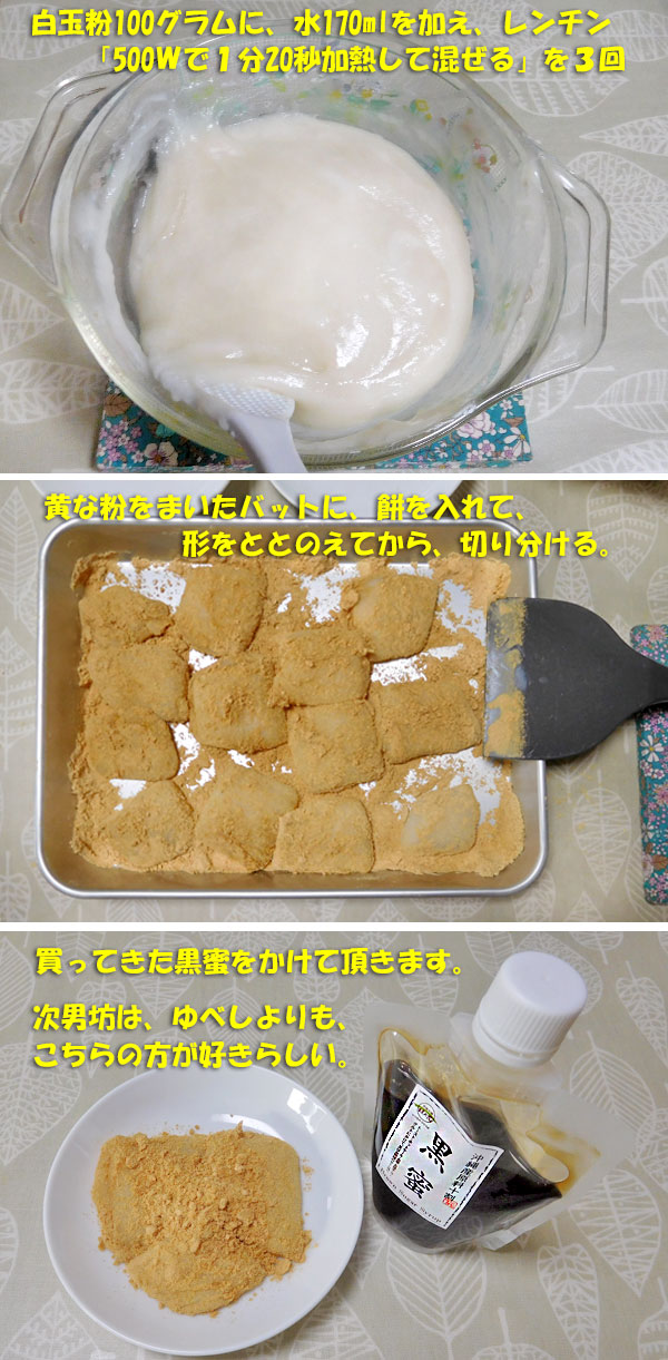 そうそう、昨日は、ついに 信玄餅を作ってみた んですよ。