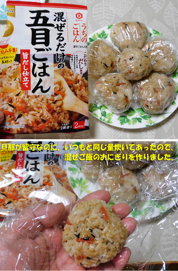 最後に、今朝作った 混ぜご飯のおにぎり