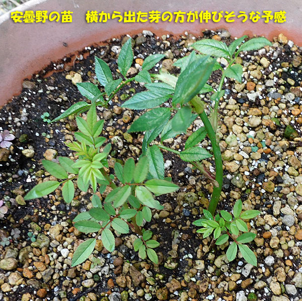先日鉢植えにした 挿し芽の安曇野