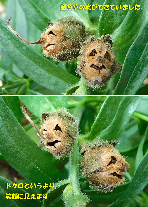 そしてね、金魚草の実が枯れて、 「ドクロ」風