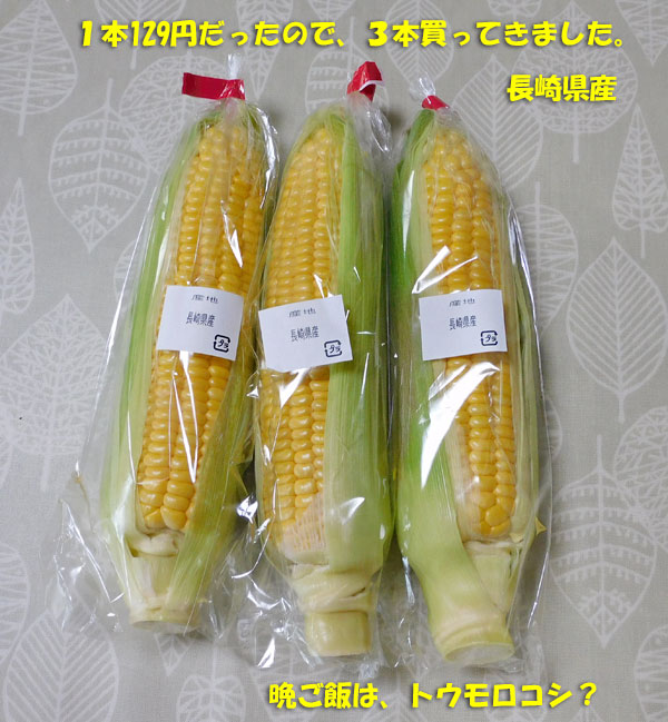 まあまあの大きさの トウモロコシ が、129円。​