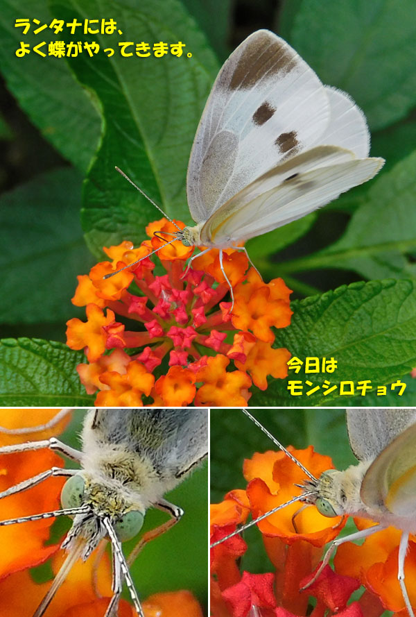 これは、 ​ランタナ​ にやってきたモンシロチョウ。