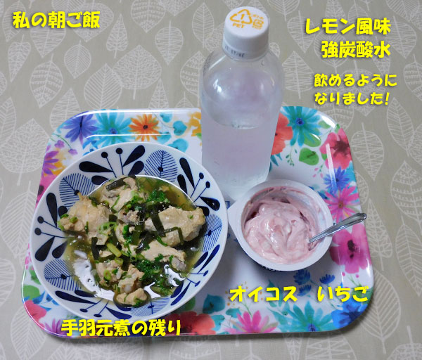 朝ごはんには、 手羽元煮の残り を食べたけれど、