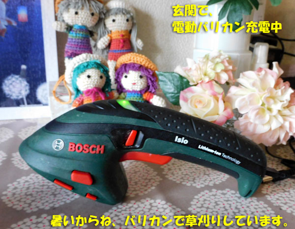 ついでに、バラや桔梗の根元あたりの雑草も、バリカンで一気に。