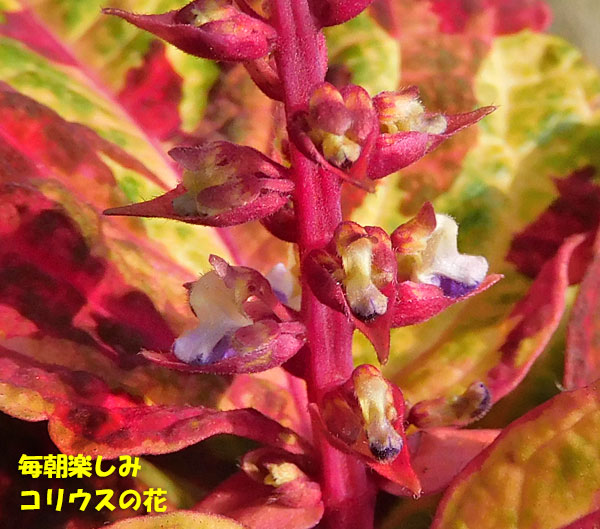 コリウスのつぼみは、紫色の花びらが少し見えました。