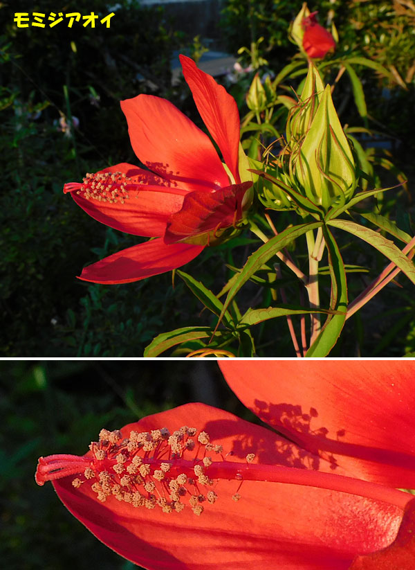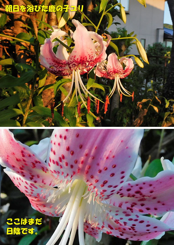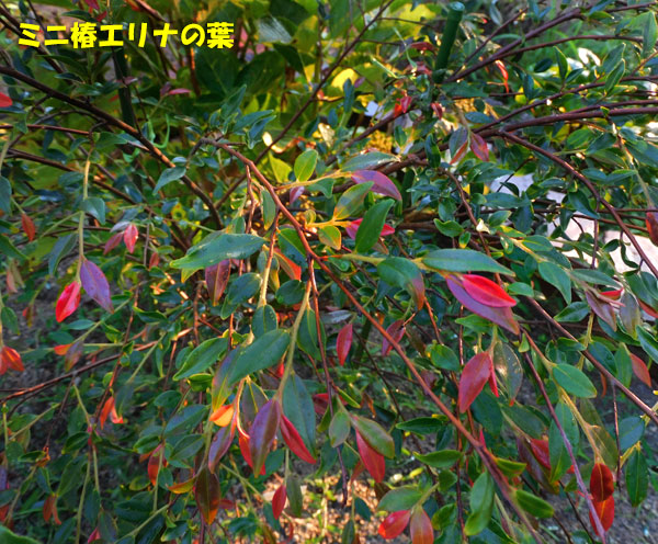 ミニ椿エリナの葉も、朝日でキレイな色に見えました。