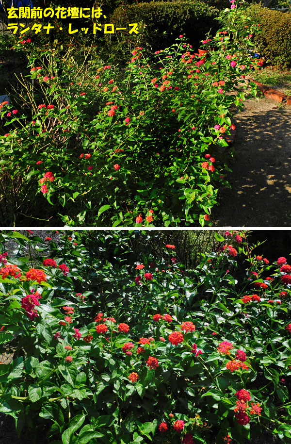こちらは、昨日少し切り詰めたけど、まだまだ大株のレッドローズ。